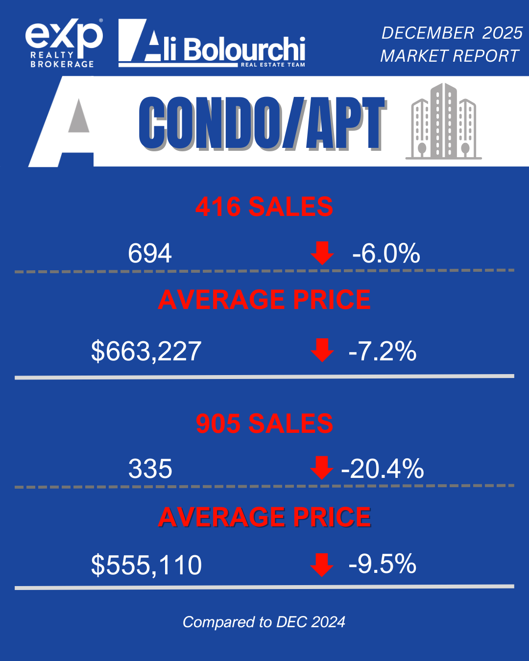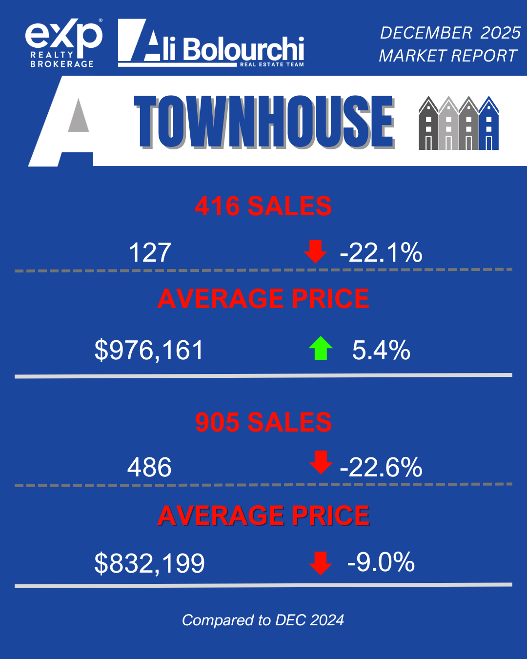 Here is a deep dive into how the 416 (City of Toronto) and 905 (Suburban GTA) markets performed by property type in December 2025.