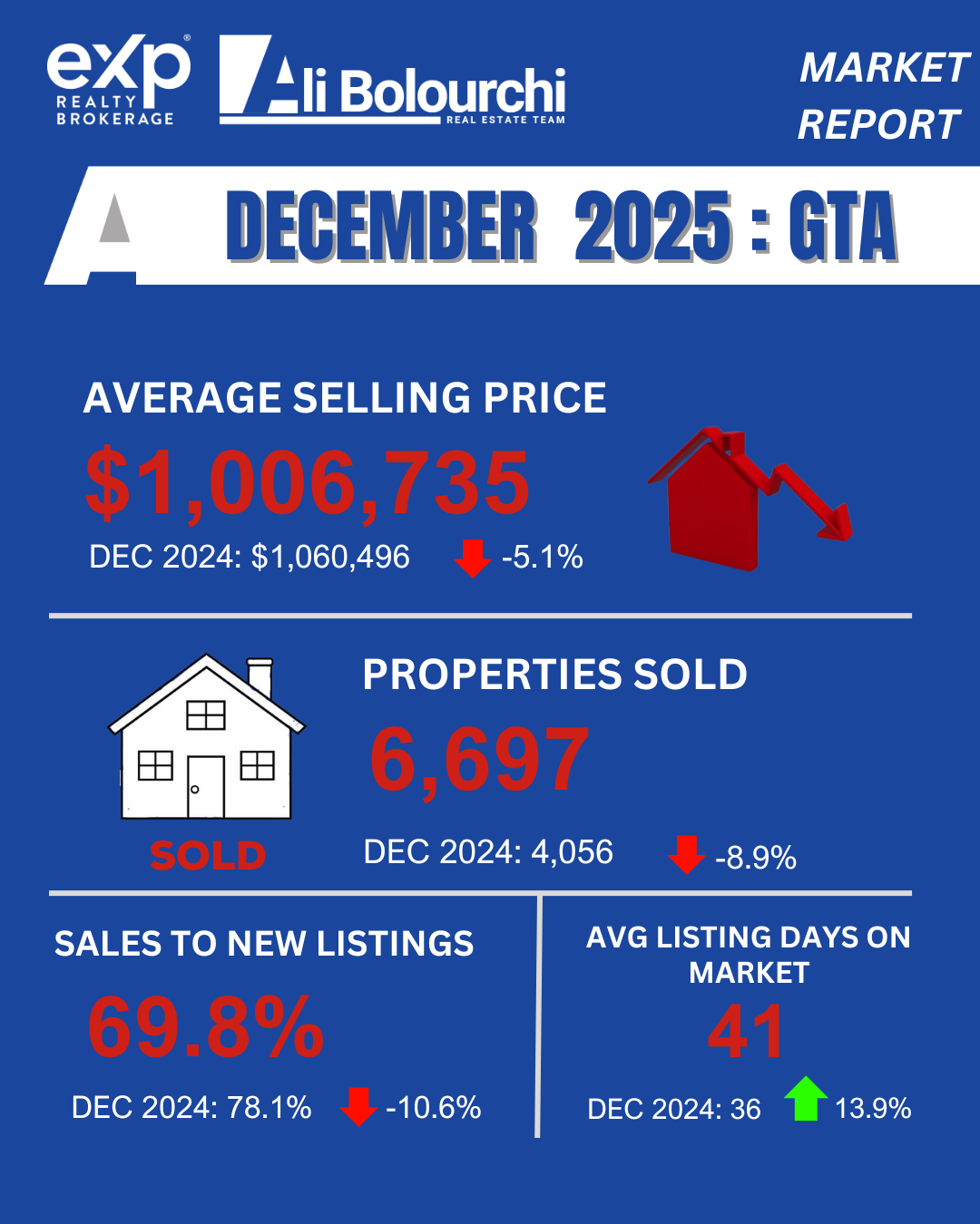 For buyers, this "challenging market" has created a unique window of opportunity. With the average selling price across the GTA dipping to $1,006,735 in December (down 5.1% year-over-year), improved affordability is finally becoming a reality. As TRREB President Daniel Steinfeld noted, once confidence in the economy and labour market solidifies, we expect pent-up demand to drive sales back up.