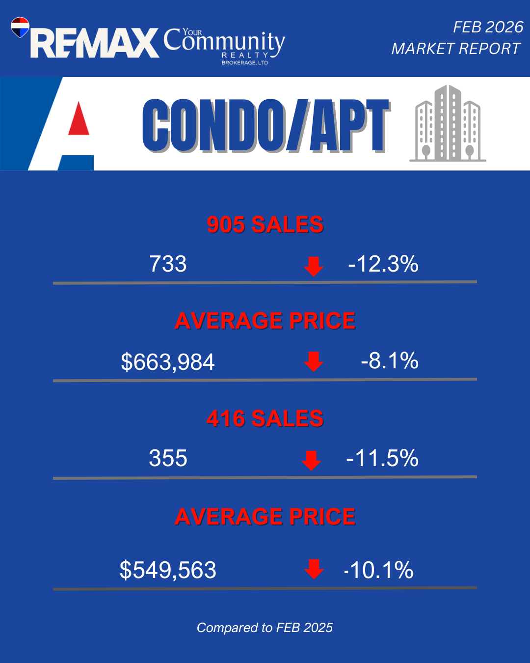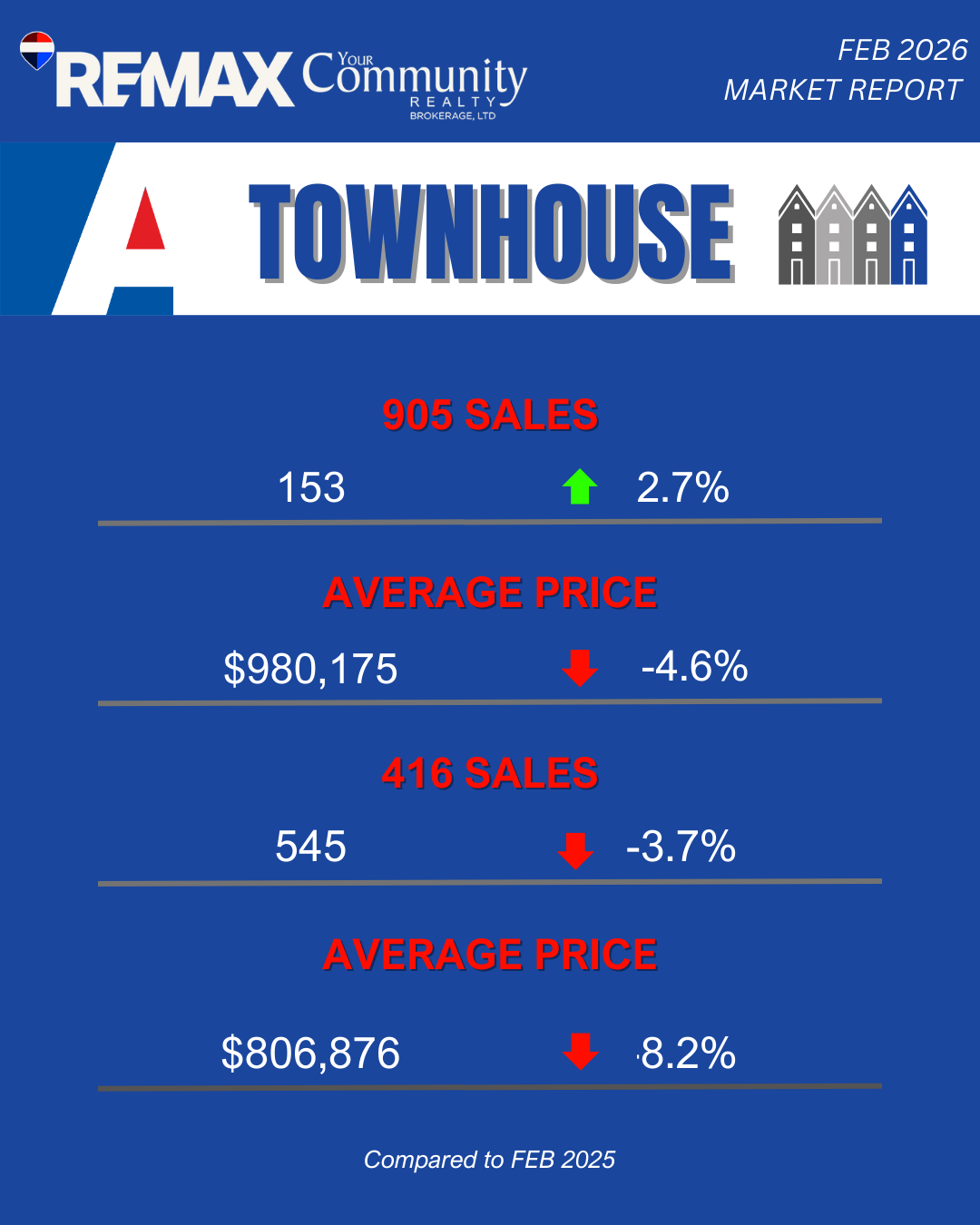 Here is your deep dive into how the 416 (City of Toronto) and 905 (Suburban GTA) markets performed by property type in February 2026.